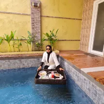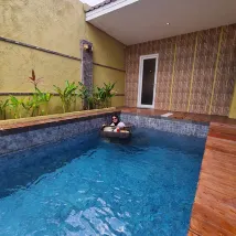 침실 2개가 있는 빌라에 4명이 있어서 즐거운 시간을 보냈습니다. 매우 넓고 큰 욕실이 있으며 사바야까지 자전거로 8분 거리에 있습니다. 빌라에는 매일 청소와 하우스키핑 서비스가 제공됩니다. 정말 이기기 어렵습니다!