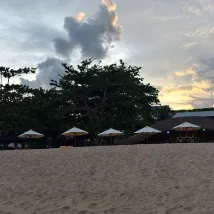 그런데 호텔 근처에서 수영할 수 없습니다. 해변은 항상 수상 스포츠 활동과 보트로 붐비기 때문입니다. 붐비지 않을 때 수영할 수 있는 유일한 곳은 수영장입니다. 티질리 근처보다 해변이 훨씬 깨끗하기 때문에 누사두아 해변에 가서 일광욕과 수영을 해야 했습니다.