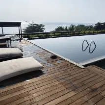 해변과 연결되어 물멍하기 좋고 수영장도 꽤 넓습니다. 해변에 있는 카페도 멋있습니다.