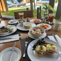 늦은 아침 식사가 가능하며 객실로 가져다 드릴 수 있습니다. 양도 많고 맛도 훌륭합니다!! 아름다운 전용 해변까지 걸어서 갈 수 있습니다. 정말 좋았고 다시 머물고 싶지 않습니다.