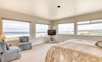 Coast Haven is for the beach lover, but also for the person that wants breathtaking ocean views and still be close to town, great dining, and golf. You'll have endless light and views with windows facing both north and south. In fact, every bedroom in this home has a view! Walk out the door to the beach where you will find endless sandy beaches with unusual rock formations called haystacks and tidal pools around rocks where you will find plenty of sea life to check out. When whales are migrating, you can sometimes see them breaching or breathing through their blowholes. From the upper deck, enjoy a cocktail while you watch the sun set and the sky turn color. Plus, you can bring your dog with you to enjoy endless adventures!