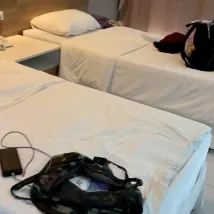 매우 시끄러운 방이며 벽과 창문에는 방음 장치가 없습니다. 매트리스 보호대가 없는 매트리스는 에어 매트리스나 트램폴린과 유사합니다. 침대 한쪽에서 약간의 움직임이 다른 쪽에서도 강하게 느껴집니다. 시트가 위사까지 마모되었습니다.