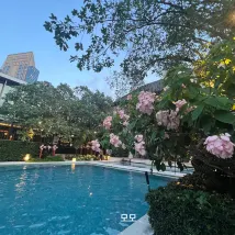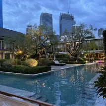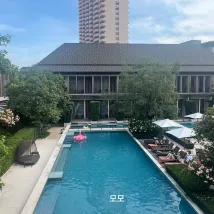 방콕에서 이런 수영장 있는 호텔이 있다니??? 진짜 수영장 하나만으로도 충분한 가치가 있습니다 예쁘기도 예쁘고 . 실제류 수영할만큼 길이도 꽤 되고요. 저녁6?7?8?이후에는 수영장 사용을 할 수 없는데 밖에서 내부가 보일까봐 그러는듯 해요! 강추