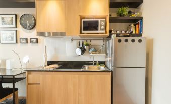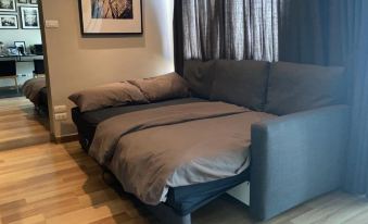 Cozy 27 sq.m. Studio near BTS Udomsuk. Welcome to our 27 sq.m. fully furnished studio, thoughtfully decorated for your comfort. Perfect for both short-term and long-term stays, the room comes with a sofa bed, dining area with city view, free Wi-Fi, and a clean shower box. The kitchen is fully equipped so you can prepare light meals (no strong-smell cooking). Contact us for a video tour! High-Speed Internet Fiber-optic Wi-Fi is provided — ideal for working or streaming anytime. Prime Location Only 2 minutes’ walk to BTS Udomsuk Just 20 minutes by BTS to Siam Station, the heart of Bangkok’s shopping & entertainment. Facilities You Can Enjoy Swimming pool with city view Fully equipped fitness room Reading room & children’s playground Landscape garden on the ground floor Laundry service on the ground floor. Security 24-hour security with CCTV, electronic key card access, and on-site guards. Neighborhood Surrounded by supermarkets, convenience stores, and plenty of street food markets. You’ll never worry about food — available all day, all night! In-room Amenities 1 Sofa Bed (Queen Size) Working table & dining table Cable TV Kitchen with full kitchen set & microwave Shower box with water heater Towels, soap, shampoo & hair dryer Free in-room Wi-Fi