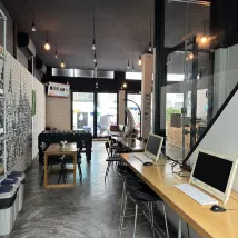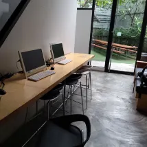 자유로운 분위기의 로비, 간단한 인터넷사용에 필요한 컴퓨터, 뒷마당으로 나가면 나무들 사이의