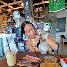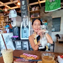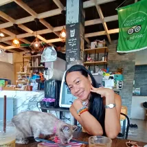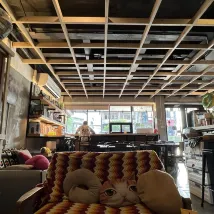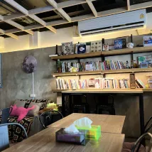 Nice little cool Coffee Hostel Restaurant with 5 cats joining you for great Coffee, strong ginger tea or fruits smoothies (love the passion fruit one). Also the staff very nice even they speak little English due not many tourists here👍😍easy to find by skytrain