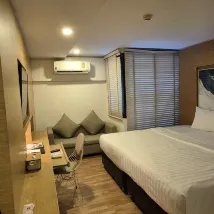 BTS 역에서 가까웠고, 꽤 오래된 호텔이었어요. 새벽에 도착해서 하룻밤만 묵었습니다. 호텔 위생 상태는 괜찮았지만, 칫솔 같은 일회용품은 제공되지 않았습니다. 방 에어컨은 소음이 심했고 리모컨이 없어서 조절할 수 없다는 점이 불편했어요. 가격이 저렴하다면 모를까, 비싸다면 굳이 여기에 머물 필요는 없을 것 같습니다. 보증금 2000바트는 현금으로만 결제 가능했습니다.