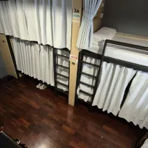 나홀로 여행객이다..도미토리8인실이용했다 ..불펀함 없었다 ..공항철도로 환승없이 한번에 갈수 있고...50분거리이고. 요금은 오직 캐시로만 40바트..라차쁘라롭 역에 내려서 숙소까지 걸어서 5분거리... 나홀로 또는 가족여행객도 많이보였고 ..바로 옆에 7-11 도 있고..랑남로드 거리엔 싸고 맛집인 일본 태국 베트남식당과 마사지샵도 가깝고 .킹파워랑남 면세점도 걸어서 8분거리 다 ..버스정류장이 바로 앞에 있고..; 수상버스역은 걸어서 10분거리이고..; 시티투어버스 시작되는 시암파라곤 까지 걸어서30분 이고 버스로 4정거장..bts전철인 파야타이역과 빅토리모뉴먼트 역까지 걸어서 15거리다 ...덥고 교통체증이 심하지만 여행가서 걸어도보고 버스도 타보고 수상버스도 타보고 다 좋은구경거리고 추억이다..숙소는 매일아침 커피와 수건과 쿠키가 무료제공 된다 ...숙소앞은 공사중이지만 잘때 소음은 별로 못 느꼈다..도미토리도 있고 가족실도 있고 ..직원들 친절하고 ..집나가면 고생이다 ..모든게 추억이다..11박 있으면서 보증금500바트냈고 나올때 돌려 받았다.,싸게 잘 다녀온듯 나쁘지 않았다 ...