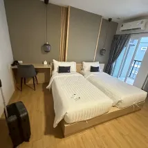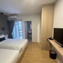 테라스 딸린 원룸이라고 생각하면 될듯 리셉션 직원들은 친절하며 23시 이후 체크인은 도로변 같은 체인 4성 호텔 리셉에서 키받으라고 했지만 23시 보다 늦었는데 기다려 주고 있었음. 매일 물2병 채워주고 제법 큰 냉장고가 있으며 5분 거리에 7-11 조금 더 가서 맥스밸류 일본계 마트 24시간 열려 있어 최고였음! 시암이나 아속역까지는 그랩이나 공철 지하철로 할만한데 만약 아이콘시암 같은 곳은 아주 멀다... 그래도 가성비 있어 좋았고 방음은 진짜 ㅋㅋㅋㅋㅋㅋ