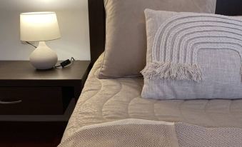 Indulge in the allure of our beautifully renovated, exceptionally spacious one-bedroom flat, complete with a generous patio and a cozy fireplace to enhance your stay. The main bedroom boasts an en-suite bathroom for added convenience, and the living room features a comfortable sleeping couch. Our fully equipped kitchen, complete with an oven, allows you to prepare meals with ease.