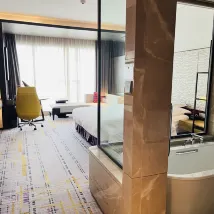 크라운프라자 동링의 위치는 매우 좋습니다. 고속철도역에서 택시로 10~15분 정도 소요되며, 바로 옆에 인타임시티도 있어 쇼핑과 식사를 모두 만족하실 수 있습니다. 호텔의 전반적인 서비스는 매우 좋으며 전체 과정에서 미소가 있습니다. 호텔의 아침 식사도 매우 풍부하고 맛있습니다. 호텔 40층에는 헬스장과 수영장이 있어 사람들의 운동 수요를 충족시킬 수 있습니다. 같은 층에는 저녁 9시부터 12시까지 음악을 들을 수 있는 미니바도 있습니다. 층고가 비교적 높아서 집 창문이 닫혀 있어서 방에서 테이크아웃해서 먹으면 냄새가 안 날 수도 있는데, 처음 예약할 때 방 타입이 명확히 명시되어 있지 않아서 방이 있는 줄 알았거든요. 창문은 창문을 열 수 있다는 뜻이었습니다.그리고 호텔 세탁도 처음에는 무료인 줄 알았는데, 물어보니 유료라고 하네요. 예를 들어, 호텔에서 수영하려면 옷을 세탁해야 하며, 그렇지 않으면 젖은 수영복을 다시 집에 가져가는 것이 불편할 것입니다. 😋