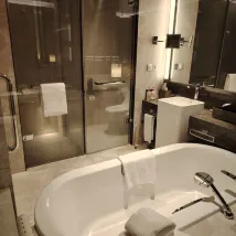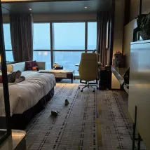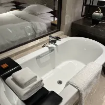 청결도: 객실이 매우 깨끗하게 청소되었고, 물품도 적시에 보충되었으며, 다음날 물 6병이 제공되어 정말 좋았습니다! 요청한 베개도 빨리 가져다 주셨고, 수건과 목욕가운도 편하게 사용했어요.