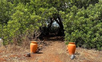 8 Hectare land with campers and caravans and open kitchen, toilets and showers surrounded by animals and nature.