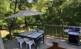 Our Cape house, a cozy 4 season cottage on a quiet dead-end street, has a private wooded backyard overlooking an old cranberry bog. It's got a new outdoor shower and both gas and charcoal grills.