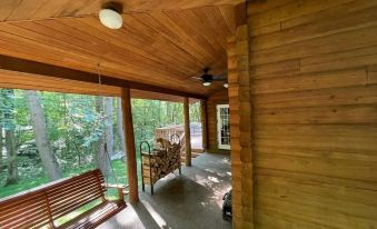 Serenity by the lake gives you the privacy you need to escape from the hustle and bustle of daily life and reconnect with mother nature. Relax as you grill out on the deck or read a book on the covered porch swing while surrounded by valleys on both sides filled with mature 70-foot hardwood trees teaming with wildlife. Stroll down the trail from the back yard to the lake where you can enjoy complimentary use of two kayaks.