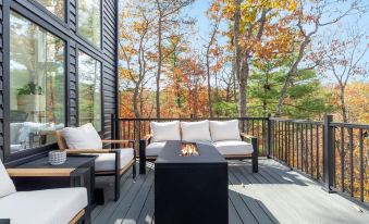 Deckside Sunsets: Reflect on the day's adventures while relaxing on the deck with a drink in hand, propane firepit going, as the sun sets over the mountains.