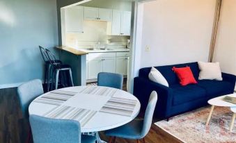 A shared washer/dryer is in the building and there is off street parking for your use, free (one car).About pets:No pets allowed.About checkOut:Check out before 11:00 AM.About children:Children allowed: ages 0-17.About checkIn:Check in after 4:00 PM.About smoking:Smoking is not permitted.About minBookingAge:Minimum age to rent: 18.About events:No events allowed.