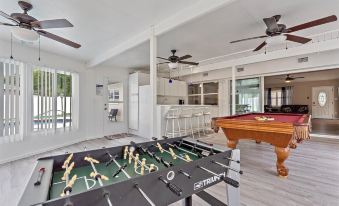 This Villa has 3 bedrooms, 2 bathrooms, kitchen, living & dining, Pool, GAME ROOM (Pool Table, Fossball ,Bar, )