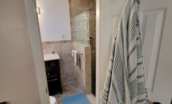 Great location as promised . Very clean , nice modern bathroom .Worked perfectly for what we needed it for . Strange odor when entering the place after being out , but did not notice after you were in it
