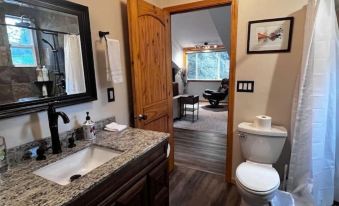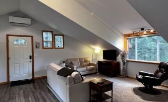 Our Very special Studio apartment that is nestled in the trees with mountain views and a view of an eagles nest. Brand new finished off apartment, perfect for a couples weekend getaway. When the sun is out incredible afternoon and late evening sunshine, perfect to enjoy on the spacious front deck.