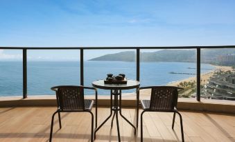 客房衞生乾淨整潔,床很大,採光通透,設備齊全,服務周到,前台可以免費寄存行李,視野開闊,在房間可以看到海,很贊!