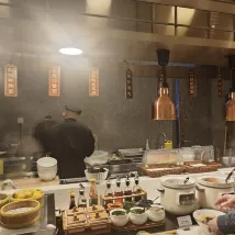 아침 식사는 5층에 있으며, 종류가 다양합니다. 춘절 기간에는 방이 꽉 차서 아침에 식사하는 사람들이 많아 식사가 제때 업데이트되지 않고 식사가 제때 픽업되지 않는 경우가 있습니다.