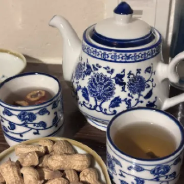 호텔과 객실은 아름답게 장식되어 있습니다. 객실에 땅콩 한 접시와 현지 과일 한 접시(이름은 모르겠어요)를 준비해 놓았고, 정통 중국 차 두 종류도 있습니다.