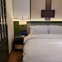 좁은 골목길에 위치한 이 객실은 스마트 게스트 컨트롤과 넓은 욕실을 갖추고 있습니다. 객실 자체는 비교적 작지만 밤에는 매우 깨끗하고 조용합니다. 지하철 19호선과 2호선, 스차하이와도 가까워 편리합니다. 리셉션 직원도 매우 친절했고, 체크아웃할 때 짐을 옮겨주는 데 도움을 주었습니다.