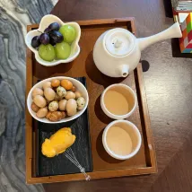 고급스러운 애프터눈 티 (옛 베이징 특색 디저트, 갓 우려낸 중국차, 건강 견과류, 제철 과일): 다오샹춘(稻香村) 디저트가 특히 맛있었어요.