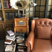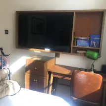 방은 크지는 않지만 매우 깨끗하고 침구가 편안하며 장식 디테일이 제자리에 있습니다. 장식은 영국 스타일이고 색상 구성이 편안하며 방에 "율리시스" 사본이 있습니다.