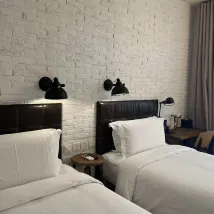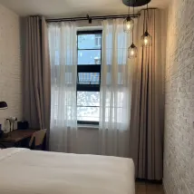 방은 조용하고 편안했습니다. 여러 번 묵었는데, 정말 깨끗했습니다. 침대도 편안하고 부드러웠고, 깨끗하고 정돈되어 있었습니다. 트윈 침대는 작았지만 필요한 모든 것이 갖춰져 있었습니다. 디자인도 독특하고 아주 좋았습니다! 다음에도 이곳을 선택할 겁니다. 작지만 아늑한 안뜰이 있는 아주 멋진 곳입니다. 프런트 데스크 서비스도 매우 친절했고, 정말 마음에 듭니다.