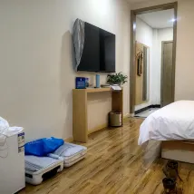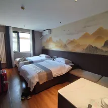 호텔은 차이스커우역 F 출구에서 도보 10분 거리에 있어 매우 편리합니다. 지하에는 약 20명을 수용할 수 있는 작은 레스토랑이 있습니다. 아침 식사는 20위안으로 옥수수, 만두, 찐빵, 소시지, 튀김 스틱, 우유, 요구르트, 채소 등으로 구성되어 있으며, 오전 7시부터 10시까지 제공됩니다. 음식은 괜찮고 매우 편리합니다. 지하에는 세탁기, 건조기, 작은 헬스장, 그리고 마사지 의자 두 개가 있습니다. 객실은 전반적으로 깨끗하며, 직원들이 매일 청소합니다. 욕실 환기 시스템은 개선이 필요합니다. 4인용 스위트룸은 1인당 침대가 하나씩 있어 편안합니다.