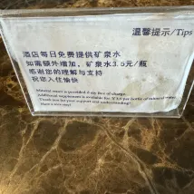 숙소 답변: 친애하는 손님 여러분, 메트로파크 베이징 위안통 인터내셔널 호텔에 따뜻한 후원과 지원에 감사드립니다! 귀하의 숙박을 만족스럽게 즐기지 못해 진심으로 사과드립니다. 객실에 무료 미네랄 워터가 제공되며, 프런트 데스크 직원에게 연락해야 합니다. 처음 객실로 보내실 때, 테이크아웃도 저희 직원에게 연락하시면 즉시 객실로 보내드리겠습니다. 진행 속도는 멈추지 않을 것이며, 더욱 끈기 있게 노력하겠습니다. 핫 필로우는 다음 번을 기대하고 있습니다. 최선을 다하고 매일 행복하세요.