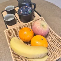 프런트 데스크의 공용 구역에서는 과일, 간식, 대추차 등을 제공합니다.
