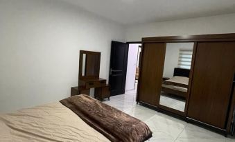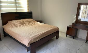 Newly furnished with Large master bedroom with king bed, two stands, dresser and large cupboard, bed room two contains two single beds, two stands a dresser and large cupboard, the living room contains one sofa bed 3 seats and two sofas each one is two seats. There is a spacious kitchen equipped with microwave, electric kettle, electric heater,