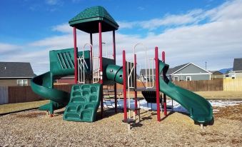 This an entire single family home with an oversized two car garage, patio, fenced yard. Each room has black out blinds, felt hangers, memory foam mattresses and pillows, hypoallergenic linens and duvets. Enjoy a full kitchen/dining/great room/outdoor space with a brand new gas grill! We have sleds for the sledding hill available in the garage. Let the kids enjoy a playground and park space right across the street. Ask us about our skis and boots!