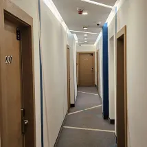 호텔 입구가 너무 어두워서 처음 밤에 도착했을 때는 좀 무서웠어요. 하지만 방은 아주 좋았어요. 난방, 헤어드라이어, 냉장고, 금고 등 편의시설이 다 갖춰져 있었어요. 다만 방을 잠글 수 없다는 게 아쉬웠어요. 밤에 자는 동안 누가 침입할까 봐 걱정됐어요. 전반적으로 여기 묵는 건 괜찮아요. 가족이나 친구들과 함께 묵는 게 제일 좋아요. 그렇지 않으면 정말 무서웠어요.