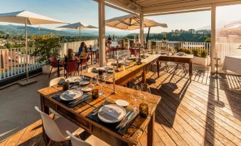Astor Hotel has an excellent location in the historic centre of Belluno. It is a very contemporary hotel with remarkable views and underground parking (best to reserve parking in advance). Rooms are very modern and comfortable. The restaurant and bar share an amazing deck that is a lively gathering place in town because of its sunset views over the river valley. Service is good. Breakfast is OK. Wi-Fi is not only slow, but does not stay connected.