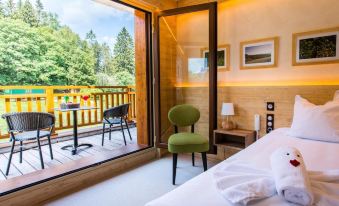 Les chambres sont très belles et confortables, vraiment superbe ainsi que le spa (sauna, douches sensorielles, piscine, espace détente...) et le bar. Le service de l'hôtel est top ! Les plats du restaurant de l'hôtel étaient très bon. Ils proposent un service de location de VTT ainsi que des cartes des sentiers de randonnée autour. Vraiment un incroyable weekend.