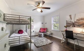 Whole house - 2 BR/1 BA in Private house in quiet Decatur neighborhood. Sleeping arrangements include 1 bedroom with queen bed & 2nd bedroom with twin bunk bed. Renovated and furnished by a professional designer. In Beautiful Decatur with privacy, personality and easy access to Atlanta. Why stay in a bland, expensive hotel when you can have your own private space with free parking, private BR’s, WiFi, deck and fenced yard, and a full kitchen for much less?!About pets:No pets allowed.About checkOut:Check out before 10:00 AM.About children:Children allowed: ages 0-17.About customRules:Maximum number of Occupants at all times is 4. The space is well equipped for 4 people but not suited to larger gatherings..If the maximum occupancy of 4 is exceeded, there will be a $50 fee for each additional guest over 4.,No parties are allowed. If a guest violates this rule, they will be asked to have unauthorized guests leave immediately or authorities will be called..About checkIn:Check in after 4:00 PM.About smoking:Smoking is not permitted.About minBookingAge:Minimum age to rent: 21.About events:No events allowed.
