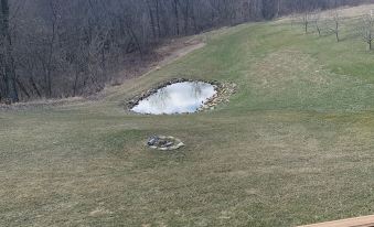 Hidden in farm country, a private yard with a pond.
