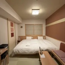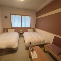 이 호텔은 정말 최고였어요! 벳푸에 가신다면 꼭 여기서 하룻밤 묵어보세요. 절대 후회하지 않으실 거예요. 우선, 문을 들어서면 신발을 벗어야 하는데, 호텔 전체가 신발 없이 다닐 수 있는 구조라 아주 특별했어요. 처음 겪어보는 '신발 벗는' 호텔이었는데, 정말 깨끗하고 편안했습니다. 방 두 개에 침대가 각각 두 개씩 있었고 매우 넓었어요. 거실과 책상도 있었고요. 냉장고 안의 물과 푸딩은 모두 무료였습니다. 온천 후에는 무료로 시원한 아이스크림을 먹을 수 있었는데, 저희는 각자 5개 이상씩 먹었어요! 아이스크림을 다 먹고 나서는 1층에 가서 무료 라면을 먹었고, 다 먹고 방으로 돌아와 편안하게 잠들었습니다. 다음 날 아침 뷔페 조식도 정말 최고로 맛있었고, 여기서 정말 행복한 시간을 보냈습니다.