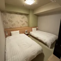 숙박도 괜찮았습니다. 세 식구가 트윈룸을 예약했는데, 방에 들어가 보니 침대를 미리 붙여 놓으셨더라고요. 침대 하나당 1.2m라 충분히 넓게 잘 수 있었습니다. 객실 크기도 괜찮아서 캐리어를 펼쳐 놓을 공간도 충분했고요.