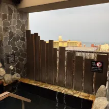 위치가 아주 좋아요. 벳푸역에서 내리면 바로 보여서 캐리어 끌고 길 건너 2분 정도면 도착할 정도로 가깝습니다. 개별적으로 이용할 수 있는 탕이 8개 있었는데, 저녁에는 줄 서는 사람이 좀 많았어요. 저는 아침 6시쯤 가서 두 곳을 이용했는데 괜찮았어요. 일출 시간도 안내해 주는데, 날씨가 좋다면 13층 창가에 앉아서 한번 보세요. 정말 멋진 풍경을 볼 수 있을 거예요!