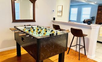 This home's quiet neighborhood is welcome whenever I return to the area. Guests will safely park off-street in the driveway, which can accommodate up to 3-4 vehicles. All outdoor areas, decks, seating, gas grill, etc. are for the exclusive use of Sunshine House Guests. Inside the home, you’ll find the laundry washer and dryer, adjacent full kitchen with appliances, big and small, and all the essentials to prepare meals. The open layout flows though the dining area, living room, and across the front of the home to the foosball table promote a little friendly competition. We hope you find the Sunshine House as comfortable as home during your stay!About pets:Pets allowed: dogs less than 20 lbs per pet (limit one pet total).See property description for additional Informatio.About checkOut:Check out before 11:00 AM.About children:Children allowed: ages 0-17.See property description for additional Informatio.About customRules:House Rules are located in the property description section. By instant booking you agree to House Rules and supplemental documents (sign and return)..About checkIn:Check in after 4:00 PM.About smoking:Smoking is not permitted.About minBookingAge:Minimum age to rent: 21.About events:No events allowed.