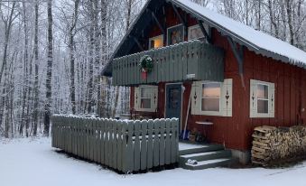 Find winter fun and relaxation at our Northwoods getaway! Located just North of US Hwy 2 between Ironwood and Bessemer in Big Snow Country of Michigan’s Western Upper Peninsula, Waldhein is the red chalet with sand and slate-colored trim at the corner of Creekside Trail and Powderhorn Road. Conveniently located on your way to the main lodge of Big Powderhorn Mountain Resort, our pull-thru driveway accesses both roads, so parking is ample for multiple vehicles. No need to turn trailers around, just pull right on through!