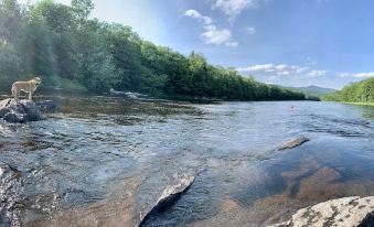 How to get to the river:  On the backside of the property, on the right, there’s a trail that goes straight back to the river. Take a left and walk down the hill and through the tall growth for five minutes. Just before the bridge on your right you’ll see a tree marked with red; our property borders this shared conservation area of 25 acres and affords the best access to the water. Please take care walking down to the water as the path is untamed - access is discretionary but I will say that most consider the effort well worth it, especially if you can get to the sand bar just left of the large rock in the middle of the river.