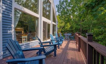 Step outside onto the expansive deck, where you can sip your morning coffee while soaking in the fresh mountain air. The outdoor space is perfect for barbecues, games, or simply sitting by the fire pit enjoying the great outdoors.