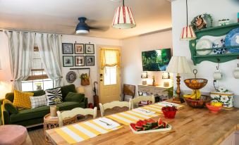 Welcome to Biloxi Belle – a whimsical, Southern-style cottage just a 10-minute stroll (0.5 miles) from Biloxi Beach! This older 720 sq ft beach cottage is colorful and inviting 2-bedroom, 1-bath home is filled with personality, local art, plenty of outdoor space, perfect for extended stays, traveling medical professionals, or military families visiting nearby Keesler Air Force