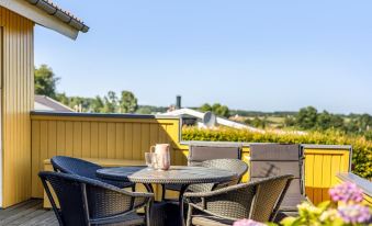 Single-family house, built in 1988. 150 m from the sea. Private: property 375 m2, well-kept garden. Barbecue (slide, swing). In the house: washing machine. Parking at the house. Carport. Grocery 3.7 km. The owner does not accept any youth groups. "Ephra" - 150m from the sea", 3-room house 90 m2. Object suitable for 4 adults + 5 children. Living room with TV. 1 room with 1 double bed. 1 room with 1 double bed. 1 room with 2 x 2 bunk beds. Kitchen (oven, dishwasher, 4 ceramic glass hob hotplates, freezer). Shower/WC. View of the sea. Facilities: children's high chair, baby cot. Internet (WiFi). Please note: non-smokers only. Maximum 2 pets/ dogs allowed. Bookings accepted for holiday purposes only. 621